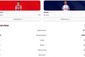 道曼只用了43分钟便打进英超首球,热刺新援哈维·西蒙斯也只有一个英超进球,但他已踢了23场出战1542分钟。
