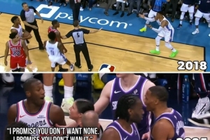比赛中威少和邓恩发生冲突并怒喷对手,两人恩怨由来已久,美媒晒出了两人生涯的三次冲突。