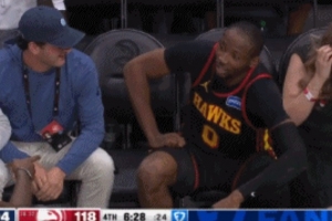 GIF-库明加坐在观众席休息 等队友过来拉才起身