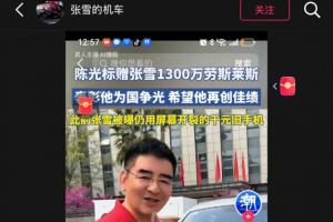 张雪回应陈光标送1300万劳斯莱斯:找车商8折收了 钱捐给嫣然天使