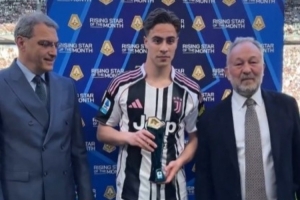 体育资讯4月7日讯 尤文在本轮意甲对阵热那亚,前锋伊尔迪兹在赛前领取了意甲3月最佳年轻球员奖杯。