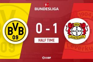 半场-多特暂0-1勒沃库森 安德里希远射破门本塞拜尼传球被断