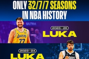 25-26赛季东契奇:场均33.5分7.7篮板8.3助攻